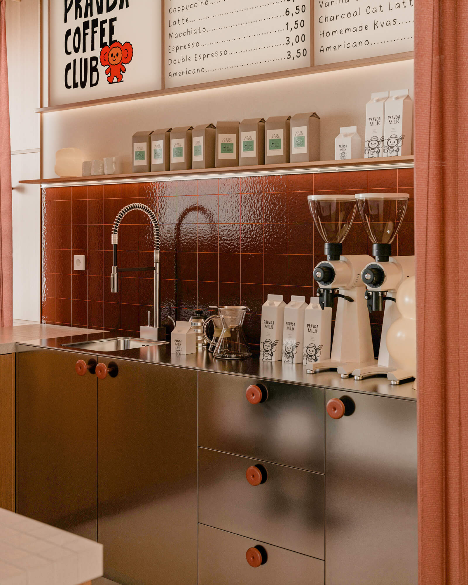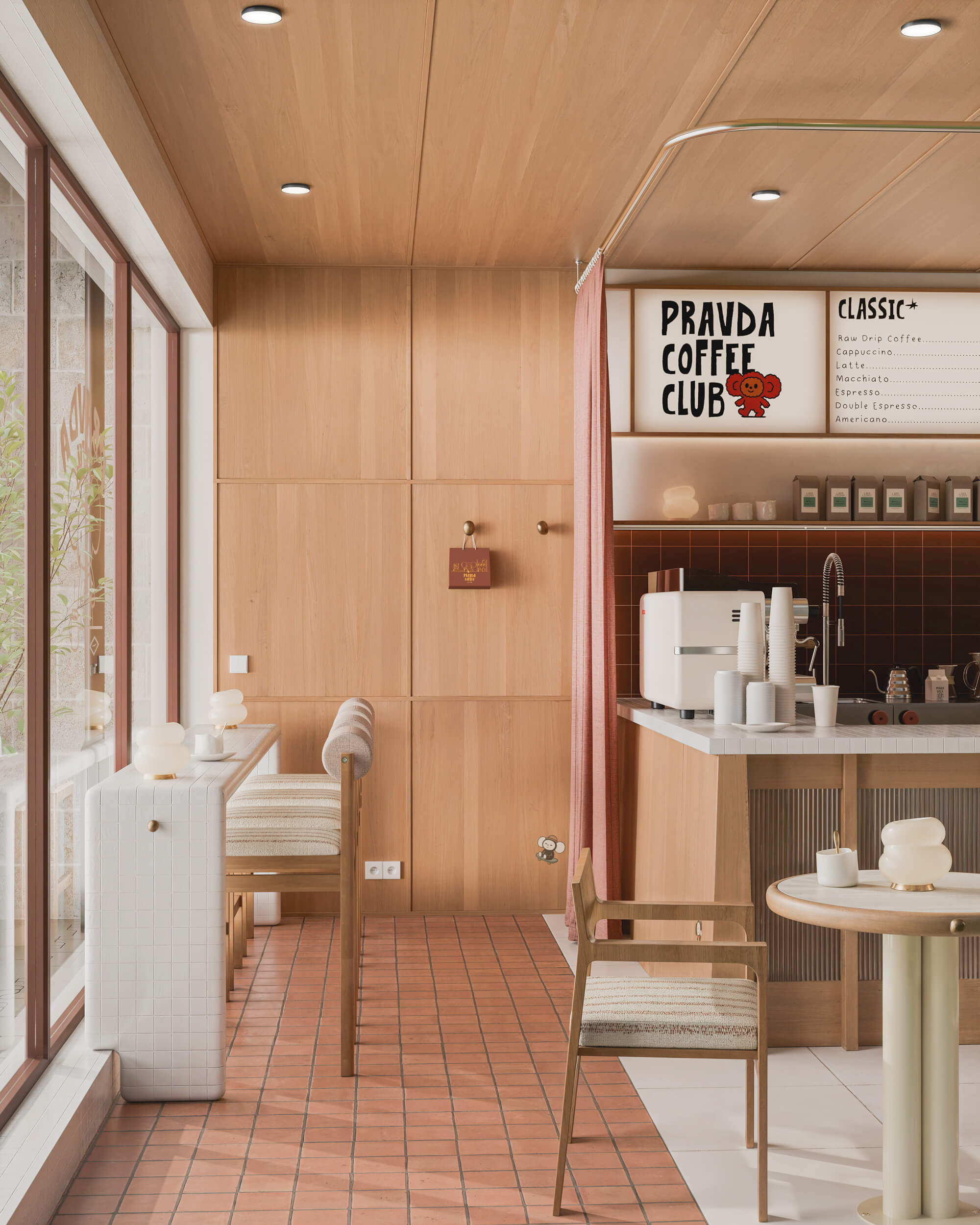 Chaque lieu a une histoire. Pravda Coffee commence avec la sienne. Le sol en terracotta, conservé tel quel, devient le point de départ — une base chaleureuse, une invitation à ralentir.
