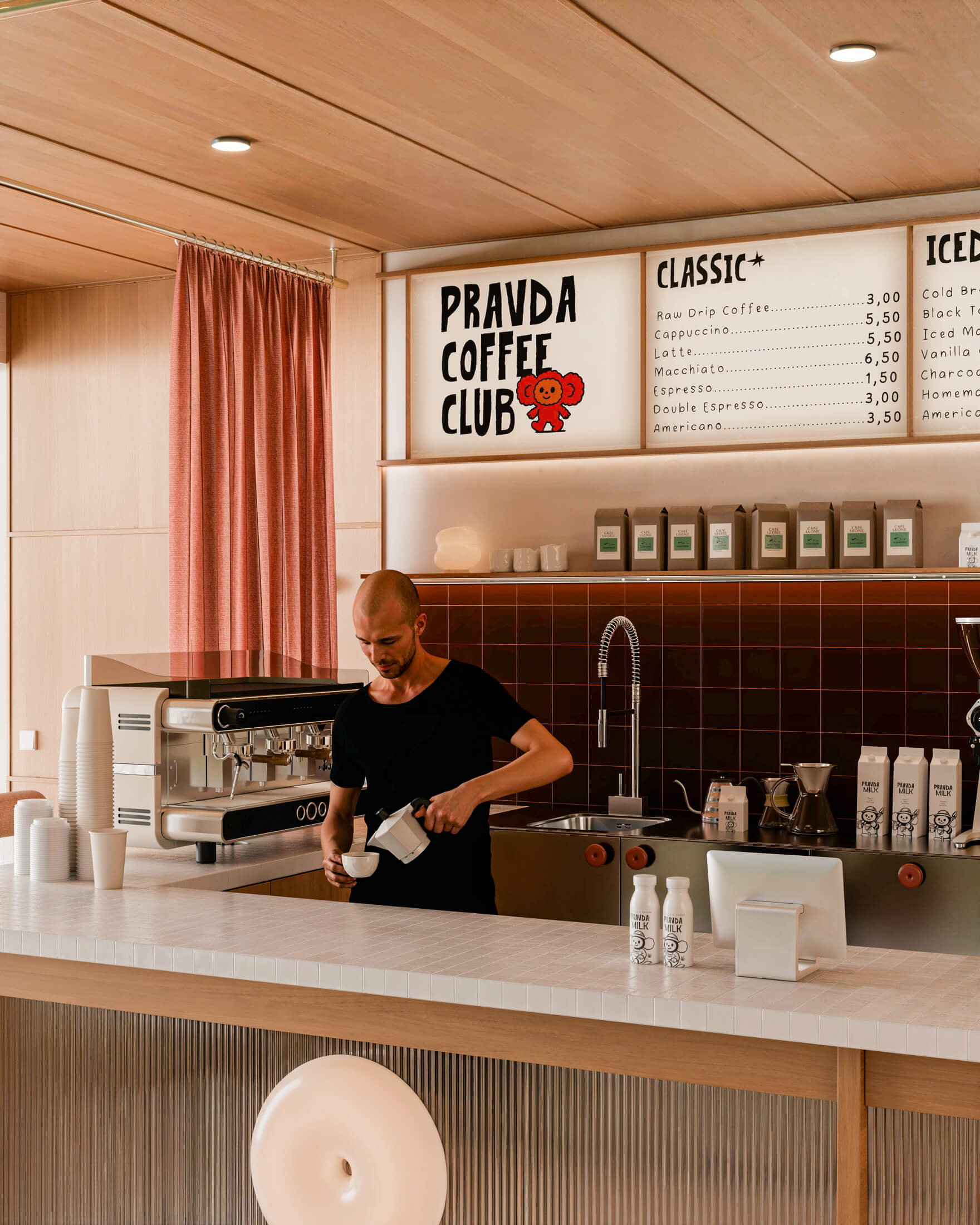 Pravda Coffee n’est pas seulement un café. C’est un espace où la matière, la lumière et le détail se rencontrent pour créer un moment suspendu.