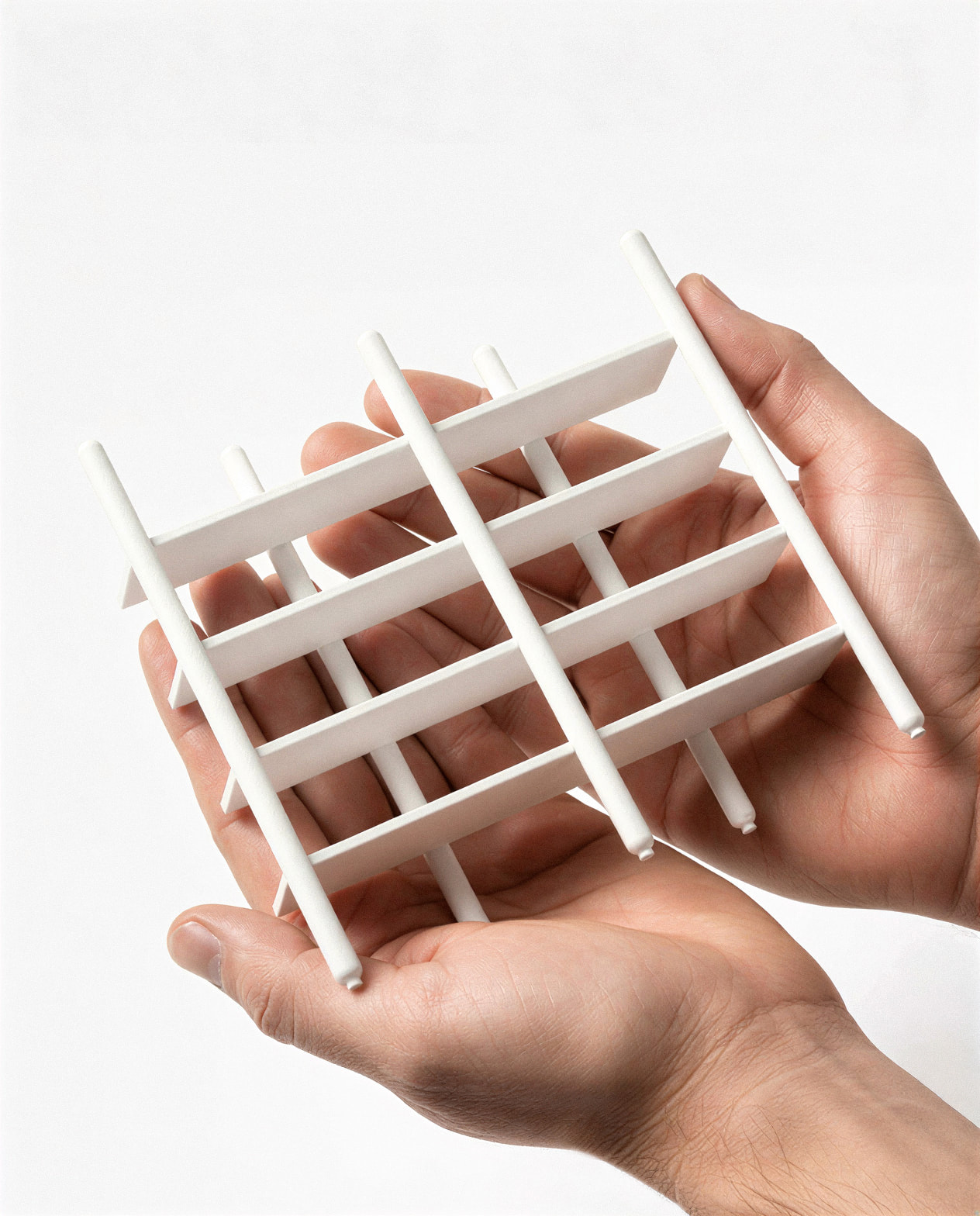 La conception repose également sur une logique de modularité par l’inversion. La bibliothèque peut être retournée, modifiant ainsi la disposition des pieds et la lecture des volumes. Grandes portées ou niches plus intimes : l’usage guide la forme.