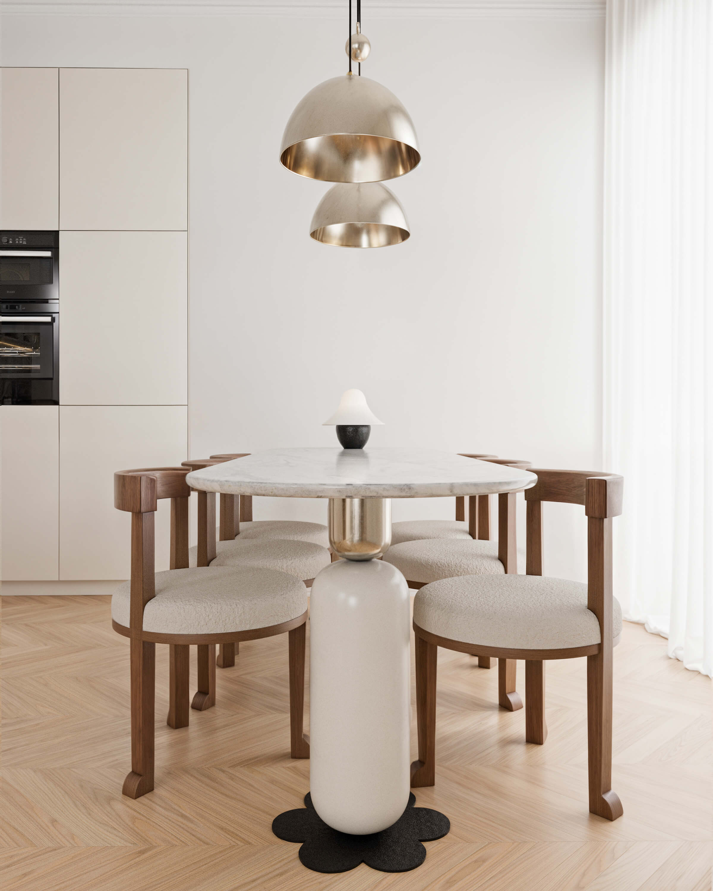 Le choix du noir et blanc s’impose comme une évidence. Deux teintes radicales, presque silencieuses, qui dialoguent entre elles pour révéler les volumes, souligner les lignes et magnifier les matières. Chaque élément, du plus structurant au plus discret participe à une composition sobre, graphique et profondément élégante.